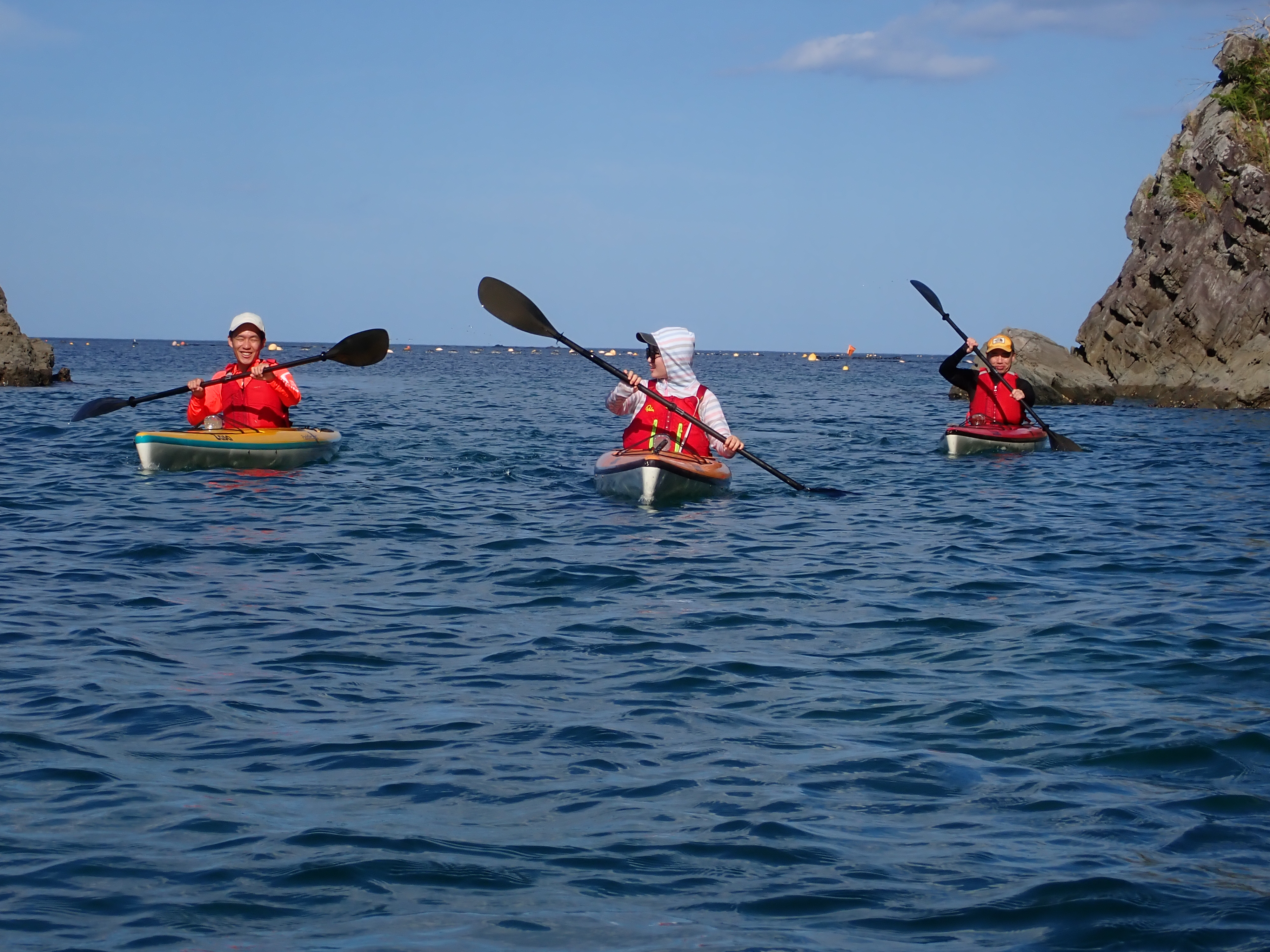 ・インストラクター/ガイド:スタッフは、日本セーフティパドリング協会のインストラクターとして認定されています。メインガイドは、シーガイド、サブガイドはカヤックアドバンストインストラクターを所持しています。また、資格の所持に留まらず、カヤックの技術や、救急法、安全管理に関する講習を頻繁に受講し、カヤックレスキューのトレーニングを欠かさないなど、常にスキルアップに努めています。