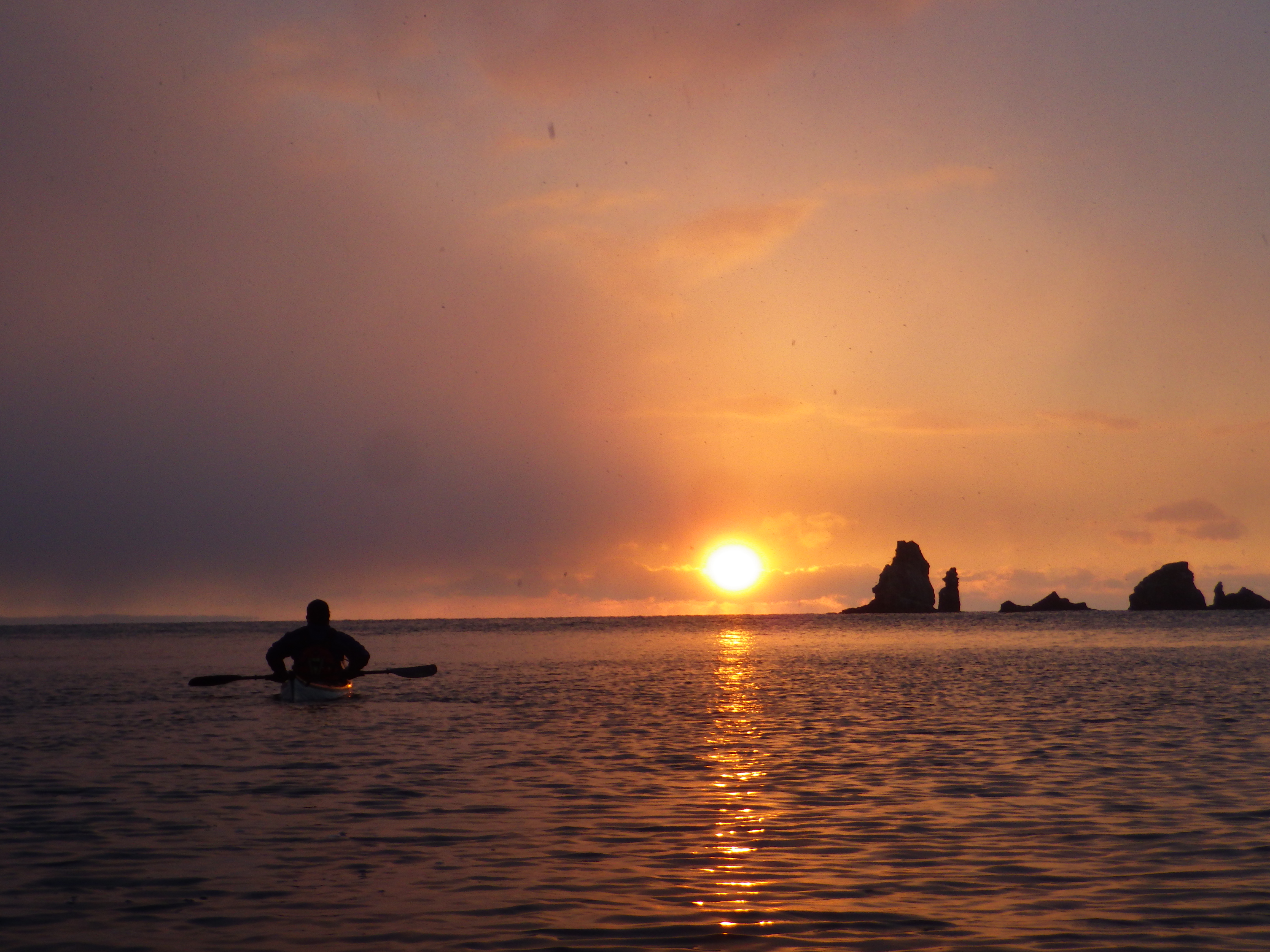 シーカヤックから見る初日の出。松島エリアは非常に混み合うので、雄勝湾又は御前湾から日の出を見ようと思います。或いは、奥松島も良いかもしれません。最初にお申し込み頂いた方のご希望に合わせて決めたいと思います。