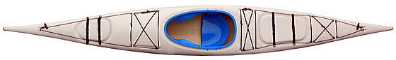 スクール艇、ザサのツーリングモデル。ザサのバウを波切りの良い形に再設計し、バルクヘッドとハッチを追加、スターンのキールに保針性を高めるスキッドガードを追加しました。大柄な初心者には、手軽に乗れるシーカヤックがありませんでしたが、ザサツーリングの登場で、無理なくシーカヤックを始められるようになりました。