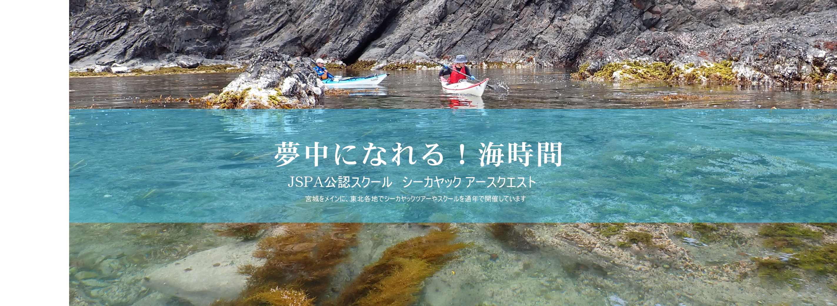 アースクエストでは、日常空間を離れ、海というウィルダネスを旅するシーカックツアーとカヤックスクールを宮城県を中心に、各地での遠征ツアーを交えて開催しています。