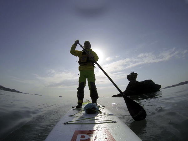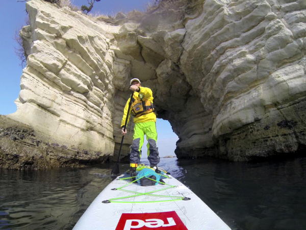 名勝・仁王岩もボードの上から見ると印象が変わります。