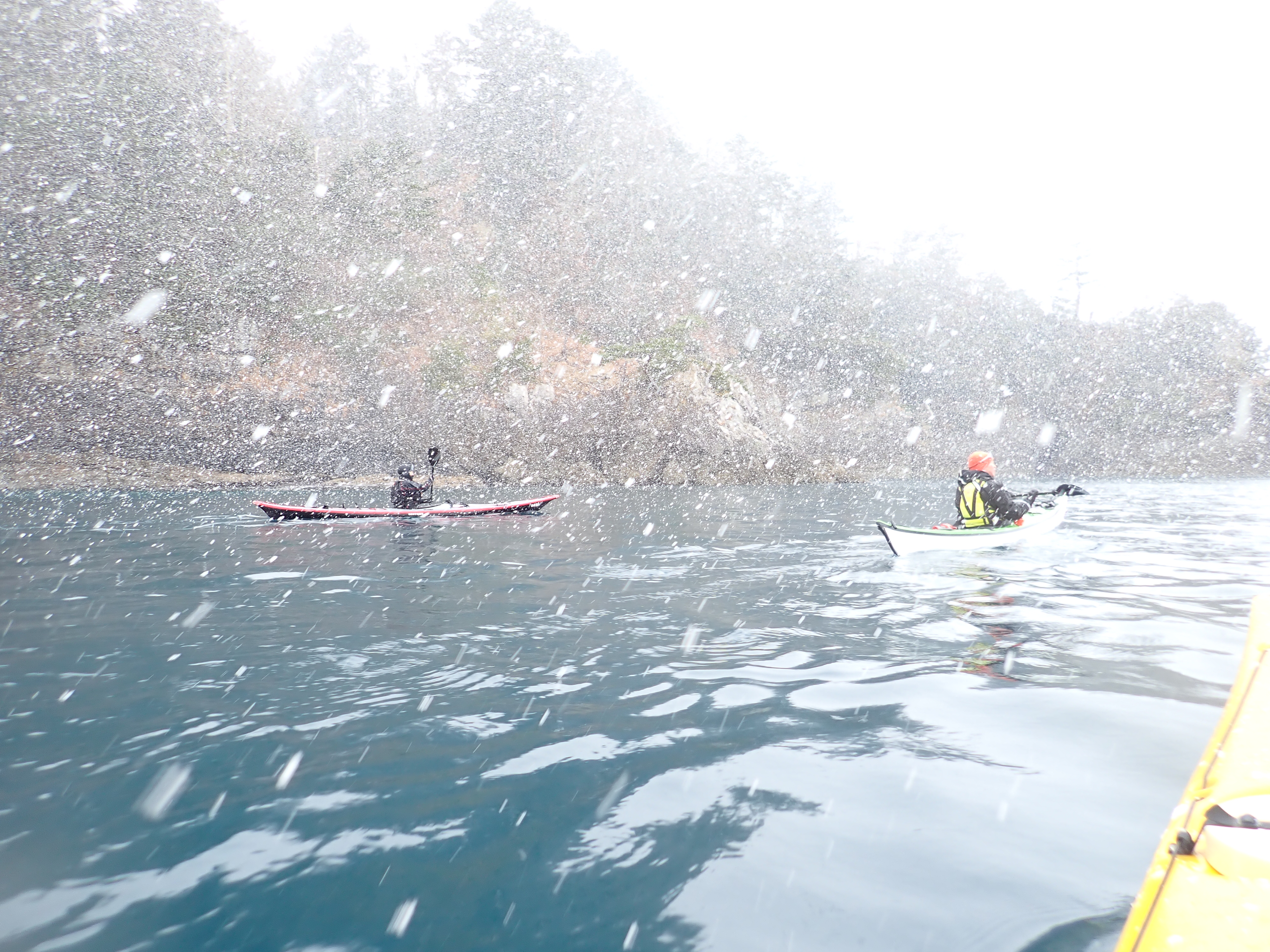 運が良いと、冬らしいスノーパドリングが楽しめます!!雪が降ると、何故かみんな笑顔になります。